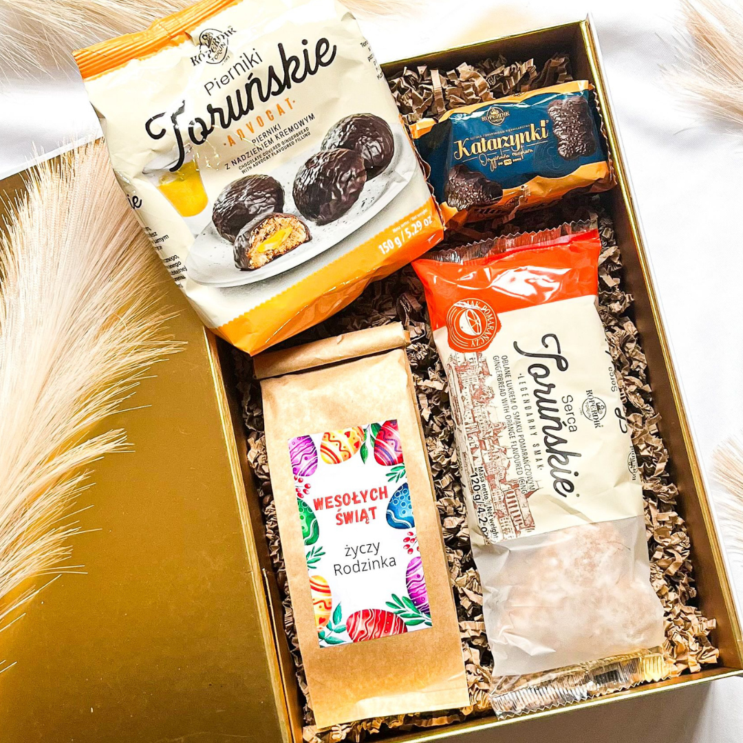 Jeśli zależy Ci na tym, by sprawić komuś przyjemność wyjątkowym, a zarazem niedrogim upominkiem, ten wielkanocny zestaw z piernikami i kawą będzie doskonałym wyborem. Ciepły, słodki i elegancki – tak jak powinny wyglądać świąteczne prezenty!