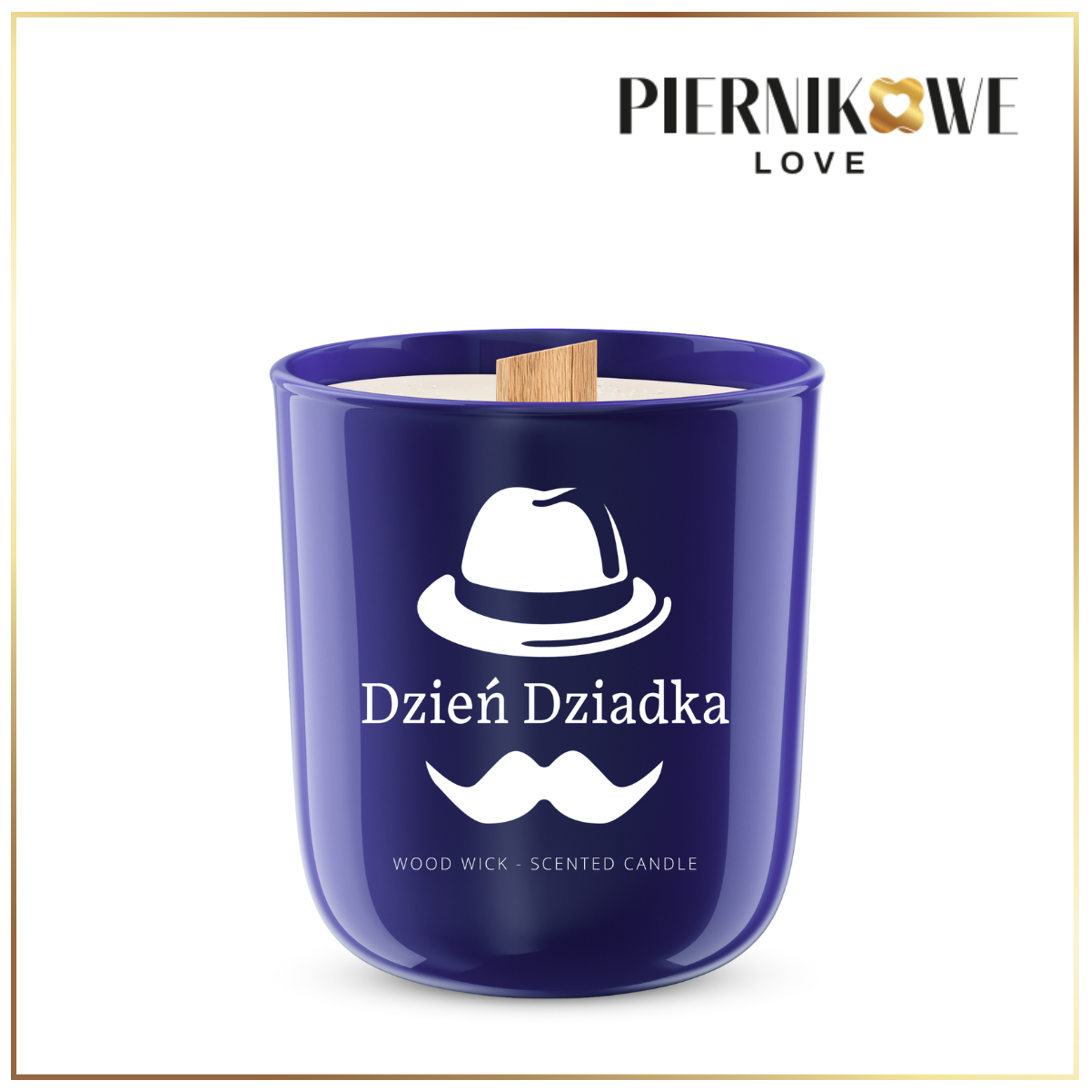 Elegancka świeca zapachowa dedykowana na Dzień Dziadka. Umieszczona w stylowym, granatowym szklanym słoiku, posiada drewniany knot, który podczas palenia wydaje delikatne, kojące dźwięki przypominające trzaskające drewno w kominku.